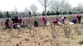 曹州牡丹园综合科主任王惠珍告诉记者,花期前,曹州牡丹园在认真做好施肥、施药、松土、除草、拿芽等,保障牡丹、芍药正常生长开放工作的同时,仍然采取科学掌控花期的方式,在主观赏区设置塑料阳棚6处,使花期提前10天左右;3月20日前后,再设置荫棚5处,面积约5000平方米,使花期延迟10天左右,使整个花期可持续到5月初,确保游客能在清明节前、五一节前后观赏到大田牡丹。除此之外,又设置芍药阳棚4处,使晚期牡丹与早期芍药衔接。