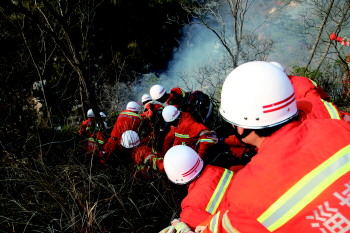 ▲参加山林火灾扑救。
