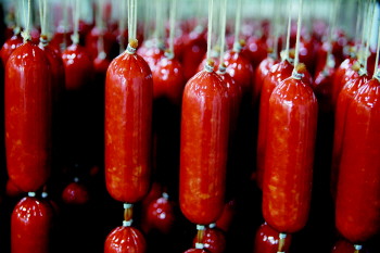 在原料方面,喜旺全部采用冷却排酸肉,相对于生鲜肉和冷冻肉而言,冷却肉较好地保持了肉的品质、风味和营养价值,原料进厂要进行严格检测,必须达到出口肉品标准。为此,喜旺食品建立无公害养殖基地,从“源头”养猪环节开始就狠抓品质,达到国家储备肉品标准。