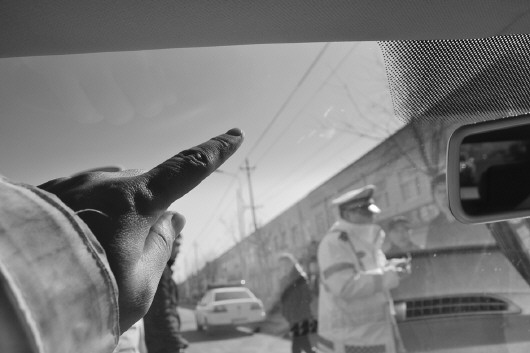 民警迅速赶赴现场,到达现场后经询问轿车驾驶员袁某得知,当时袁某驾车沿着孤滨路由北向南行驶,当行驶至泊头一家超市门口处时,想停下车买点东西。可就在袁某刚刚停稳车的时候,左侧驶过一辆大货车,溅起的一颗大石子把袁某车的前挡风玻璃砸裂了。被惊出一身冷汗的袁某立即开车追赶路过的那辆大货车。