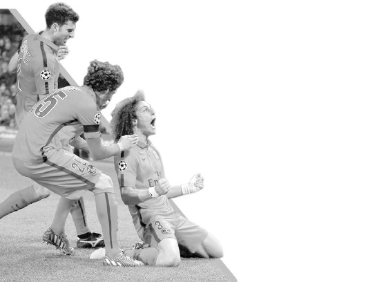眼前这片蓝色的海洋,大卫·路易斯再熟悉不过,他忘情地奔跑着,就在斯坦福桥几万蓝军球迷面前,他撕扯着球衣,几乎跑遍球场每一个角落,蓬松的卷发飘逸在每一寸空气中,庆祝着巴黎的晋级。