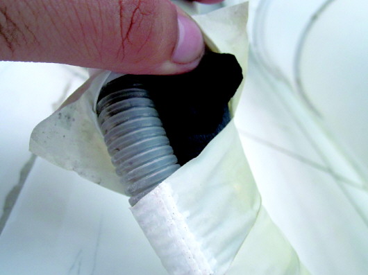 剥开胶带,黑色的便是被调换的联机管。