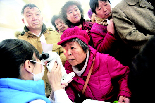 建完档案,已是68岁的张大爷开始做检查。先是空腹抽血做血糖筛查,紧接着再验光测视力、测眼压、查眼底……做完检查,医生告诉张大爷,由于有糖尿病病史,他的视网膜已经受到影响出现了病变,幸好发现及时。