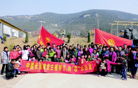 中建长清湖营销中心,在植树开始前举行环保宣传活动。