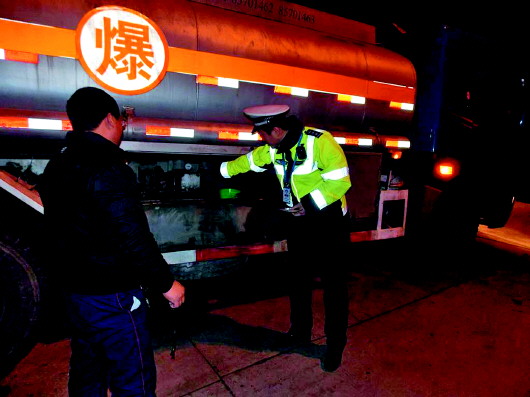 据了解,在本次夜间道路安全检查行动中,长清交警主要针对辖区内在重点道路中行驶的大中型客车、危化品运输车、面包车、渣土车等车辆所存在的超速、超员、疲劳驾驶、非法营运、涉牌涉证等多种违法行为开展集中整治,确保春运和全国“两会”期间夜间道路交通安全。 本报记者 张帅 摄