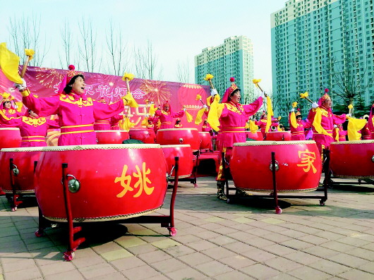 ▲锣鼓表演赢得阵阵喝彩。 实习生 衣柯静 摄