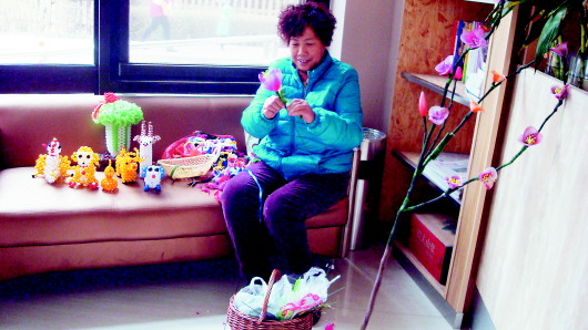 记者见到李传华时,她正在编织一条鱼。“这不还没出十五了吗?还是过年,编条鱼,年年有余。”据李传华介绍,她开始做这些编织品时,就是一时的兴趣,没想到很受社区居民的喜欢。