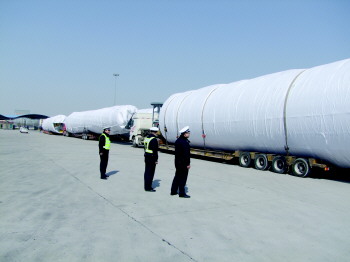 3月11日,在青银高速夏津段,有六个装载巨形风机的大挂车在高速上行驶,其中最大的车长近110米、宽6.2米、重100余吨,因体型巨大,在交警部门帮助下,通过该收费站花了将近七个小时。 本报记者 张磊 通讯员 申毅 摄影报道