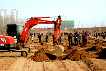 活动现场,工作人员在挖掘机已经挖好的树坑中种下一颗颗小树苗。“今天单位组织植树活动,正好可以来到户外,种上一棵树,为绿化做点事。”一位植树者说。