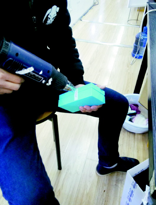 工作人员在重新封装从仓库送来的华为手机的胶贴。