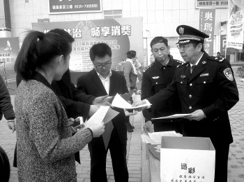 15日,菏泽市公安局联合工商、金融、保险及规模以上企业代表开展了“3·15消费者权益保护日”宣传活动。此次宣传日活动以“携手共治,畅享消费”为主题,重点宣传打击侵权假冒、伪劣车用燃油及传销犯罪的法律法规和防范知识。