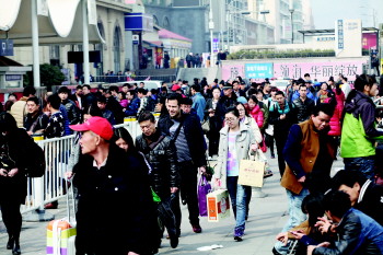 15日下午,春运最后一天,青岛火车站东广场上的旅客络绎不绝。 本报记者 杨广帅 摄