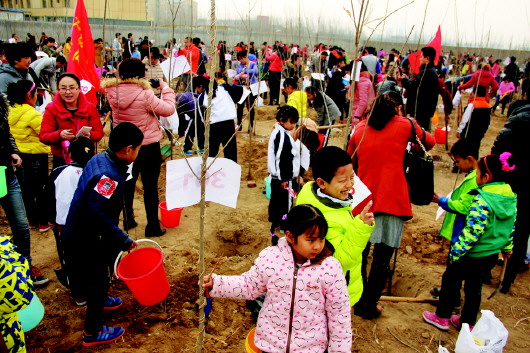 14日,2000余位市民及小记者参与植树活动。
