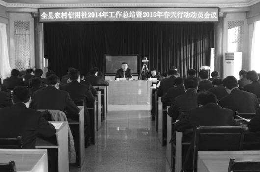 1月20日,惠民联社组织开了全县农村信用社2014年工作总结暨2015年春天行动动员会议,联社班子成员、各部经理、各社主任参加了会议。会上各社主任重点汇报了2014年工作中存在的不足及2015年工作打算;联社副主任张玉江同志宣读了《重点突破 转型发展 2015年“金纽带”春天行动活动方案》;最后由联社主任李景龙同志代表党委作了重要讲话。李景龙同志指出要准确把握、认真贯彻落实省联社和滨州办事处会议精神,同时结合联社2014年发展状况进行了深入分析和总结,客观评价了2014年联社经营发展中取得的成绩和存在的问题,并就如何做好当前和2015年全年工作作了指示。