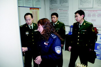 ▲大队监督员在现场检查。