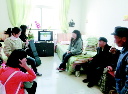 据介绍,往往一个老人就有十多个学生陪着聊天,爱热闹的老人还比较高兴,那些爱清静的老人,只得躲出去或者把门锁了假装不在。