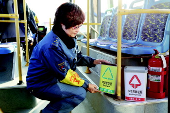 垃圾分类箱“坐上”公交车