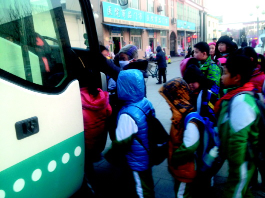 7点半校车发动,她将孩子一个个护送到车上,34个孩子清点完毕,看着孩子一个个坐好,才让王师傅发车。从商河县医院到实验小学大约10分钟的路程,她目不转睛地盯着孩子,及时提醒没有坐好的孩子,却从来没有注意路旁的景色。有一次,女儿对她说:“妈,明天带你去田园路那家店买件毛衣。”她一脸茫然地说:“田园路有卖毛衣的吗?”