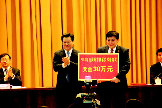 滨州市委书记、市人大常委会主任张光峰向沈志强颁奖。本报记者 王晓霜 摄