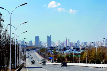 站在张店中润大道东首向西眺望,中心城区清晰可见(资料片)。