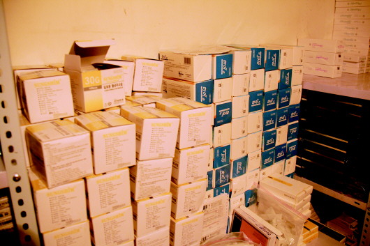 经食药监局稽查人员现场清点登记,这间十二平方米的地下室内共储存了肉毒素、表麻膏、人胎素、美白针、玻尿酸等二十余种涉假药品和医疗器械,数量多达2300余盒。此外,民警和稽查人员还在医院内查获了大量空白专业证书和韩、英两种文字印刷的空白证书,以及涉嫌私刻的“中国微整形协会”公章一枚。
