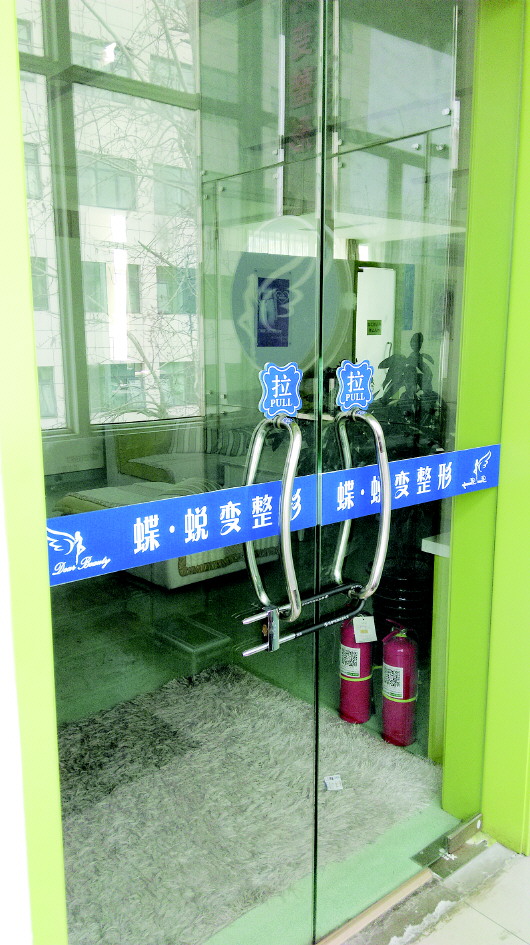 19日,蝶蜕变整形大门紧锁。本报见习记者 李阳 摄