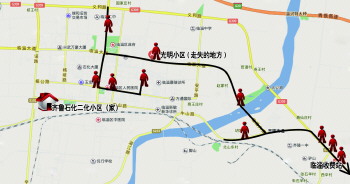 经过连续一天一夜的查看,19日下午,王先生一家已经基本摸清了老人自从17日下午之后的走失路线。根据热心人所提供的线索,老人在当天下午可能去过临淄奥德隆利群购物中心、临淄区人民医院门口、张家庄小区西门等地,而警方的监控视频中,17日下午4:50分,老人则出现在了临淄北外坏与中轩路路口,并向南走去。据此可以推断,老人在走失之后,曾沿着南北走向的闻韶路、雪宫路及东西走向的桓公路上来回徘徊,而这一段正是临淄城区较为繁华的中心地带。