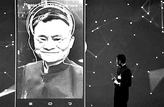 马云在德国汉诺威IT展上亲自演示“刷脸”支付。