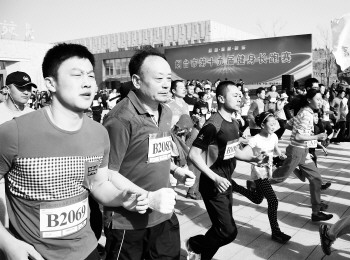①②③④ 22日,“烟台市第十九届万人长跑”活动在福山区鸣枪起跑,参与的市民中有60岁的老人,也有七八岁的小孩。
