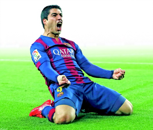 苏亚雷斯庆祝进球。
