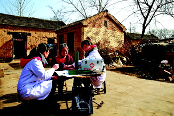 保健医生进农户活动,让群众享受到实惠(资料图)。