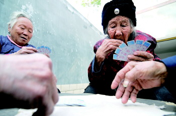 巨野百岁老人王杨氏,耳不聋眼不花,平时喜欢打打牌。(资料图) 本报记者 邓兴宇 摄