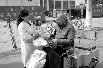菏泽市疾控中心工作人员走上接头宣传防治结核病知识。