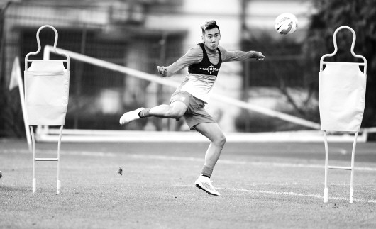 国足新人金洋洋在训练中。 新华社发