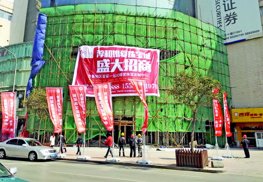 舜井淳和正在重新装修,外墙挂出珠宝城招商广告。 本报记者 任磊磊 摄
