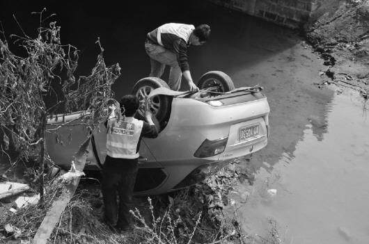 为躲前方车轿车翻进沟