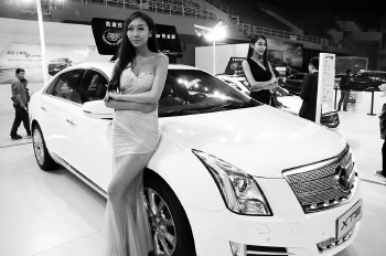 车展上的香车美女。(资料图)本报记者 张晓科 摄