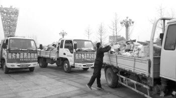 装满假劣过期食药品的车辆正待出发。本报记者 董梦婕 摄