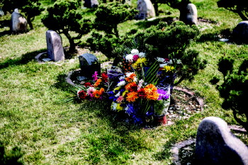 3月30日,在福宁园,一捧鲜花摆放在一位逝者的石碑前。 本报记者 张晓鹏 摄