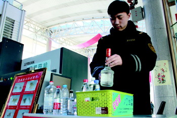 清明节来临,不少人回乡祭拜时携带用各种矿泉水瓶散装的白酒,违反了车站安检规定。3月31日,青岛汽车总站安检人员一上午没收30余瓶“矿泉水”。