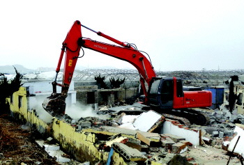 为青岛蓝色硅谷城际轨道交通工程项目让路,3月31日,崂山城管联合中韩街道办,对滨海大道新华锦小区北侧的2万余平方米建筑物进行统一拆除。该区域内共有27处花棚及12处房屋,将在4月2日前拆完。