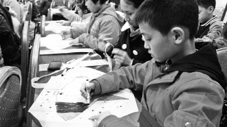 ▲小记者正在设计自己的风筝。