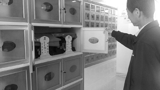 陵园负责人胡建林说,祠堂采用立体式格位,一排格位能放260个骨灰盒,一个不足20平方米的小房间,就能让上千名逝者安息,要是都挖墓穴,至少得用掉一亩地。