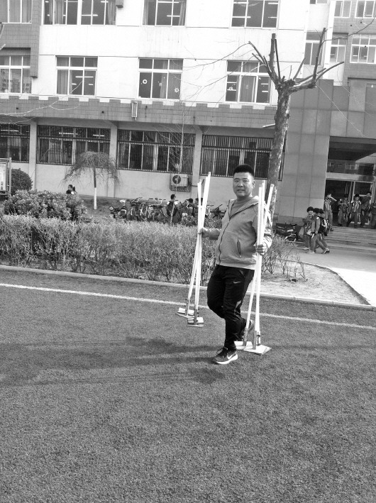 王旭的爸爸经常帮孩子们搬器械。