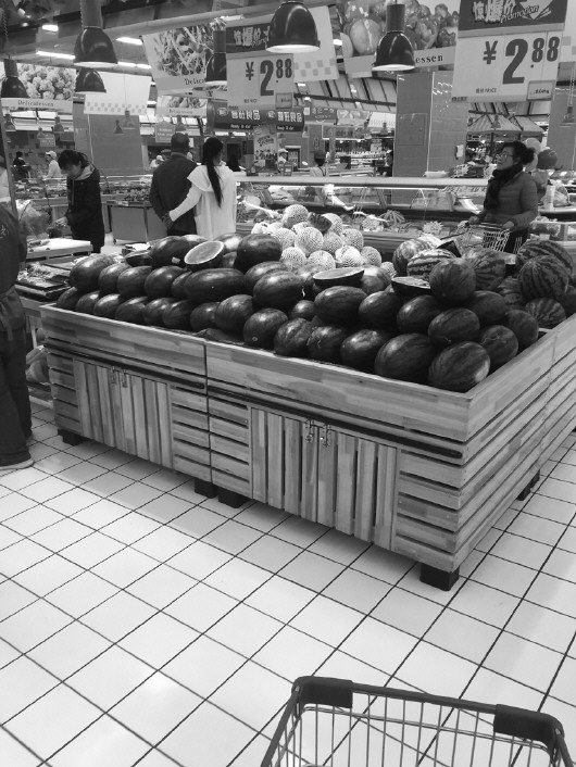超市里的黑美人西瓜。