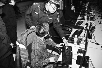 3月31日晚,公安经区分局清查ktv会所、网吧、洗浴中心等娱乐场所。当晚,共检查229家娱乐场所,发现有人在网吧吸烟,旅店不按照规定登记等违法现象,网吧和旅店老板都被处罚。图为一小伙在网吧吸烟被查。
