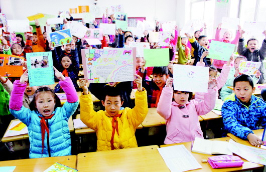 ◥济南前年已公布了49所学校学区示意图,图为课堂上的燕柳小学学生。