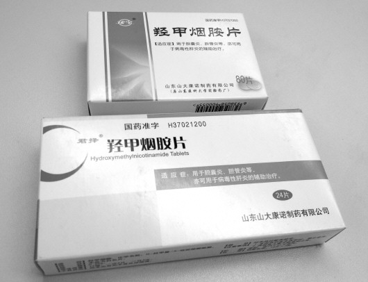 据耿先生介绍,自己患有胆囊炎,一年前在齐鲁医院看病时,医生开了这种叫“羟甲烟胺片”的药片。吃完后,耿先生在漱玉平民大药房看到也有售,一盒24片售价24.5元,便开始从药店买着吃。