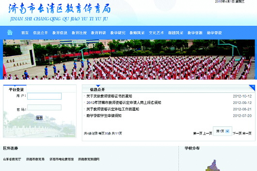 随后,记者在搜索引擎中输入“长清区教育体育局”,出现的第一条信息就是长清区教育体育局的网站链接。记者在浏览长清教体局网站时发现,“教育信息”板块中的内容更新较多,较为及时,除了假期基本上都有更新,但在“信息公开”、“教育法规”、“教育研究”等板块中,相关信息更新得比较少。