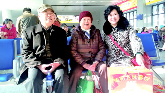90岁的张秀芳在儿女的陪同下在烟台南坐动车到济南看望妹妹。 蒋大伟 摄